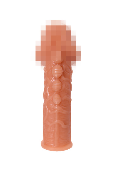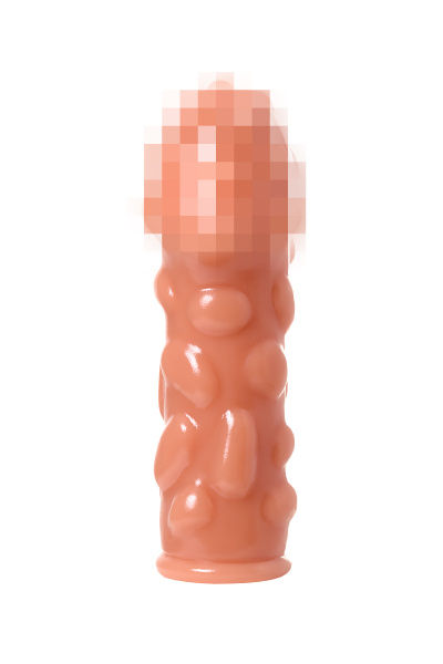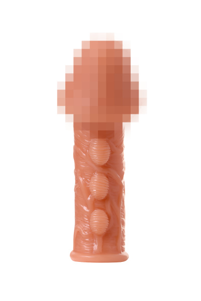 Насадка KOKOS реалистичная с дополнительной стимуляцией, TPE, телесная, 15.6 см с тремя бугорками