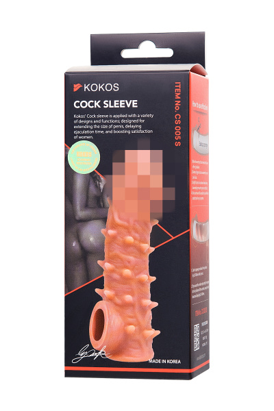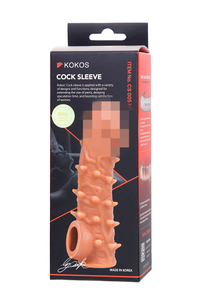 Насадка KOKOS реалистичная с дополнительной стимуляцией, TPE, телесная, 15.6 см с мягкими шипами