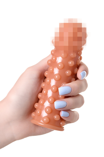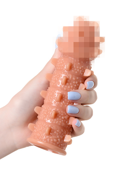 Насадка KOKOS реалистичная с дополнительной стимуляцией, TPE, телесная, 17,6 см с мелкими выпуклыми шипами