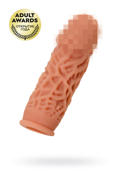 Насадка KOKOS реалистичная с дополнительной стимуляцией, TPE, телесная, 15.6 см с крупными пупырышками