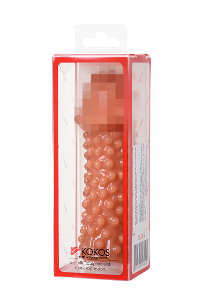 Насадка KOKOS реалистичная с дополнительной стимуляцией, TPE, телесная, 13,8 см с шариками разных размеров