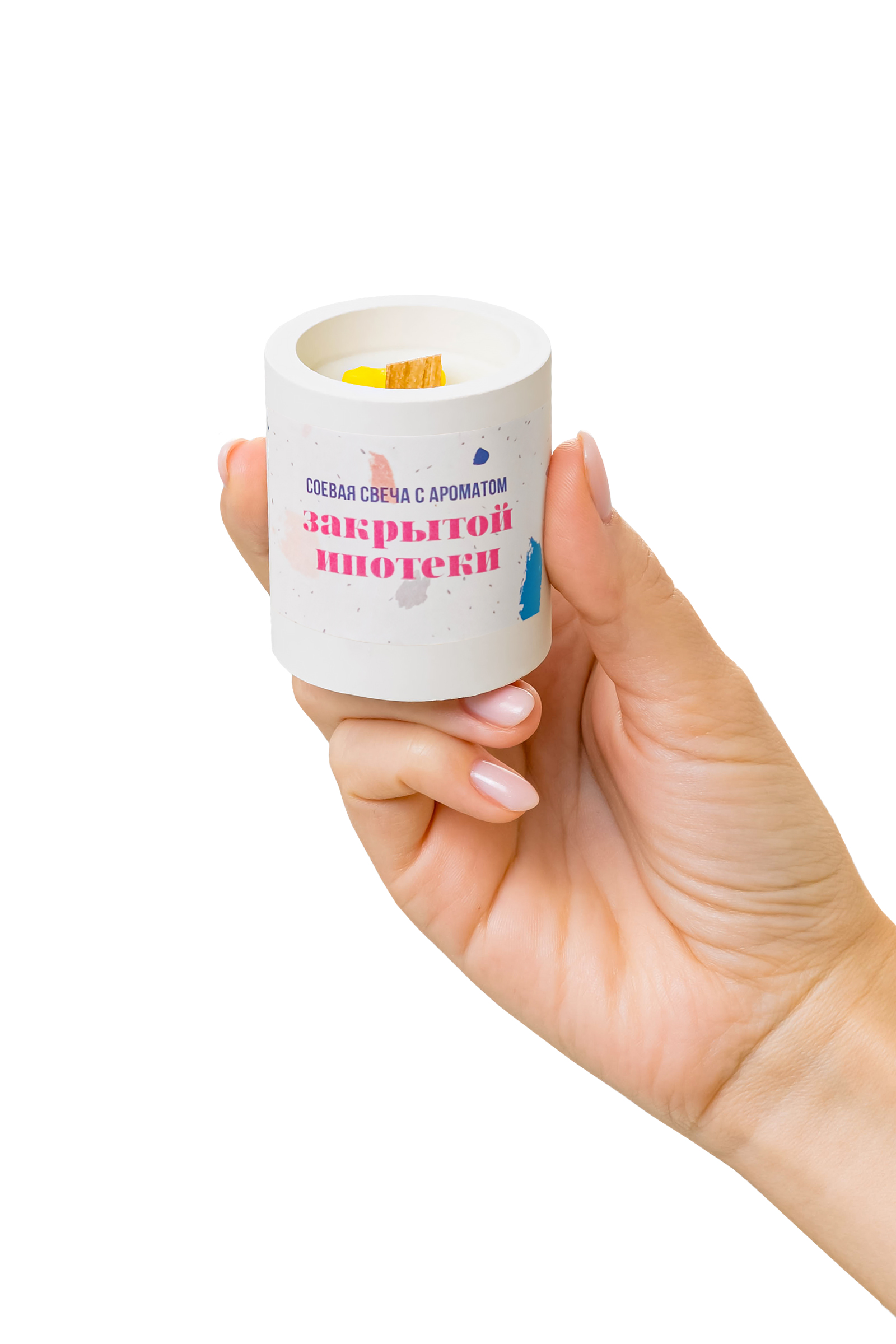 Соевый воск, ароматизатор, деревянный фитиль. Тара для свечи изготовлена из скульптурного гипса. Время горения - 35 часов.