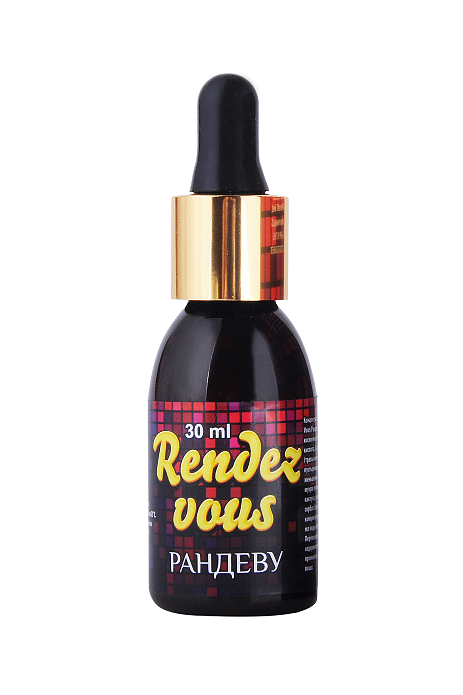 Рандеву - уникальное средство, способное быстро и эффективно разбудить женскую чувственность.Состав препарата богат на мощные природные афродизиаки: экстракты муира-пуама, зеленых мидий, коры йохимбе, померанца- компоненты отвечающие за мощное половое возбуждение. Помимо этого RENDEZ VOUS при регулярном приеме естественным образом стимулирует женское либидо и борется с первыми признаками климакса. Экстракт травы мелиссы, цветков ромашки, трав пустырника, корня шлемника снимают стресс и перенапряжение, расслабляют нервную систему- расслабтесь и получайте удовольствие! Способ приготовления: по 45 капель(3мл) концентрированного напитка развести в 100-200 мл воды или любого безалкогольного напитка. Перемешать, дождаться полного растворения содержимого(1-2 минуты) и выпить за 30 минут до полового акта.