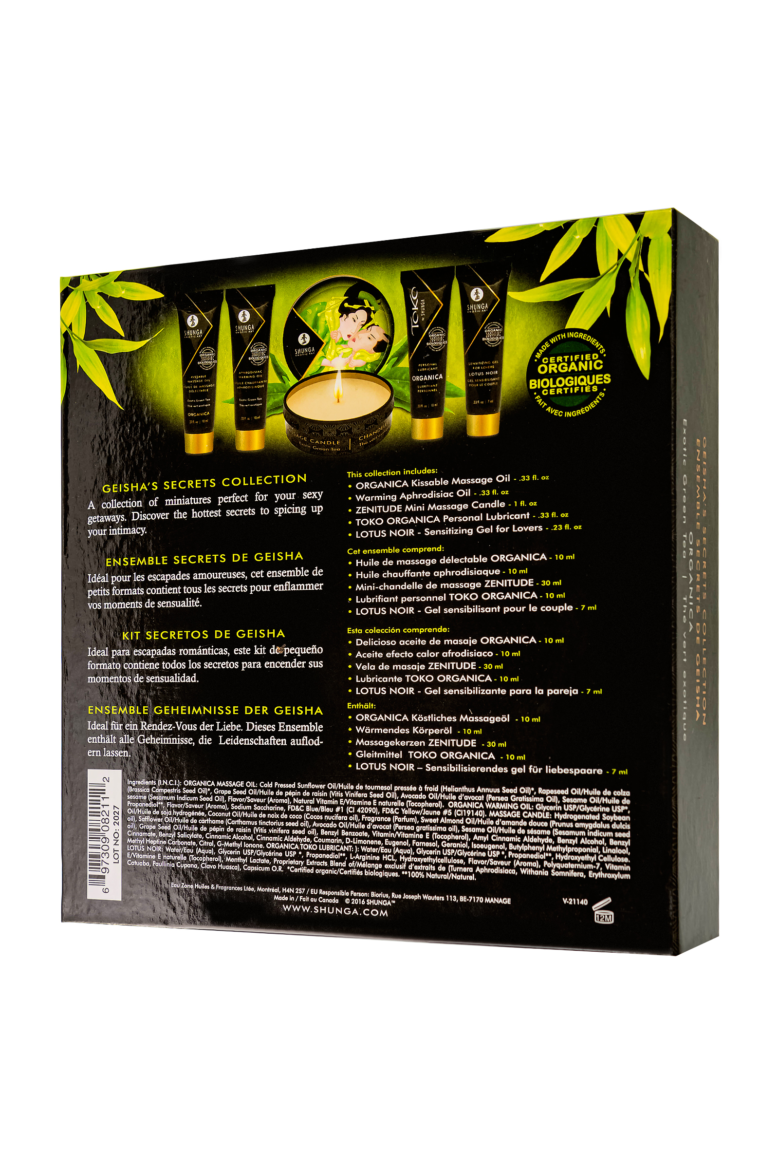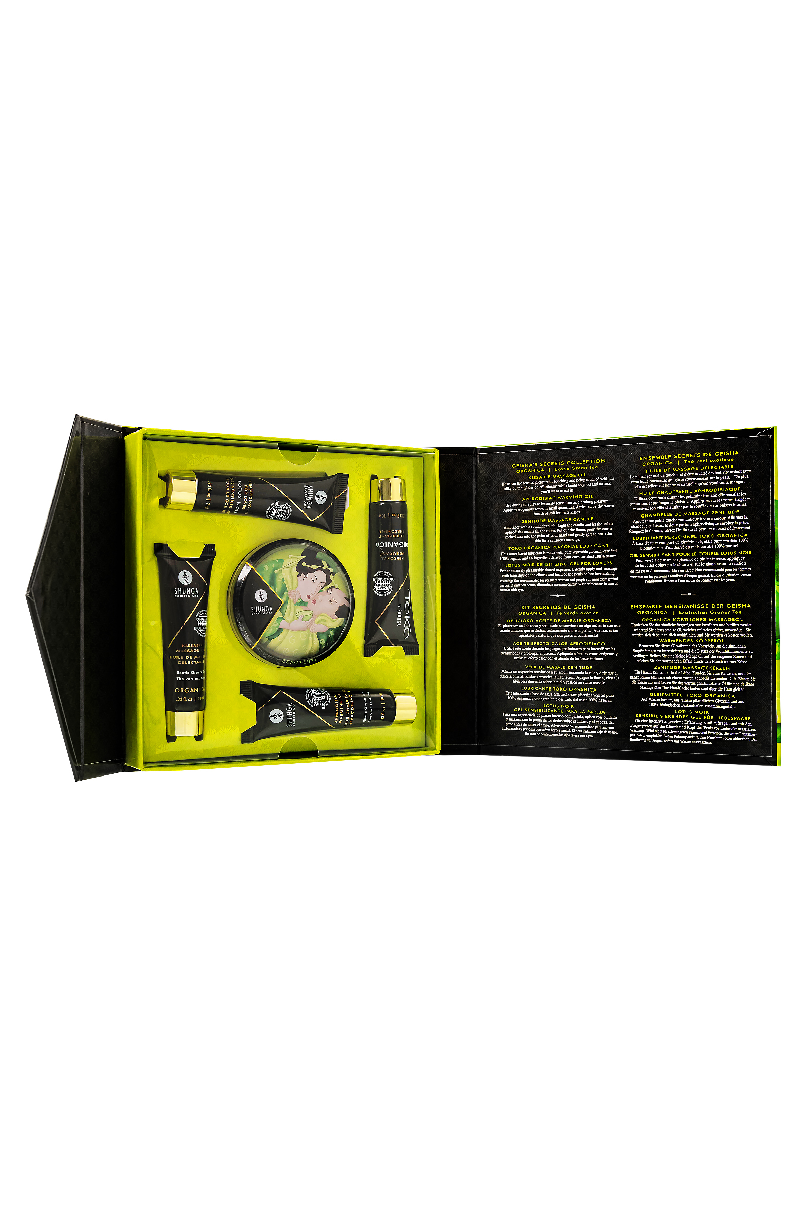 Geisha’s Secret — Exotic Green Tea — это роскошный набор бренда Шунга для влюблённых, который перенесет вас в мир чувственности и наслаждения. Этот набор из 5 мини-продуктов от Shunga идеально подходит для романтических путешествий и интимных вечеров. Содержит всё необходимое для того, чтобы создать атмосферу страсти и нежности, вдохновленную природой. Что включает: Масло массажное Shunga Organica «Зелёный чай» (Exotic Green Tea) (10 мл) – натуральное масло предназначено для чувственного массажа всего тела, включая интимные зоны. Лёгкая и шелковистая текстура увлажняет кожу, делая ее мягкой и гладкой. Аромат и вкус экзотического зеленого чая добавляют массажу изысканности и превращают его в прелюдию, наполненную поцелуями. Масло полностью съедобное, что позволяет наслаждаться им без ограничений. Масло массажное для тела Shunga «Экзотический зеленый чай» (Exotic Green Tea), разогревающее (10 мл) Ощутите тепло с маслом-афродизиаком, которое активируется поцелуями и тёплым дыханием. Аромат и вкус экзотического зеленого чая разогревают ваши чувства и усиливают желание. Идеально подходит для стимуляции эрогенных зон и чувственных экспериментов. Это масло съедобно и безопасно для использования. Массажное аромамасло в виде свечи Shunga «Спокойствие. Зеленый чай»(Zenitude.Exotic Green Tea) (30 мл) – cвеча, изготовленная из 100% натуральных масел, при горении превращается в теплое массажное масло, которое не обжигает кожу и идеально подходит для чувственных массажей. Масло смягчает и питает кожу, не закупоривая поры. Не содержит токсичных веществ, парафина и безопасно для всех типов кожи. Лубрикант Shunga Toko Organica на водной основе, из 100% органических компонентов (10 мл) на водной основе изготовлен из растительных ингредиентов, включая органический глицерин. Шелковистая текстура и длительное увлажнение делают интимные моменты ещё более приятными. Лубрикант не имеет вкуса, совместим с латексом и безопасен для женщин, склонных к вагинальным инфекциям. Интимный гель-лубрикант для мужчин и женщин Shunga «Черный Лотос» (Lotus Noir) (7 мл) — это уникальный гель, созданный для усиления ощущений и оргазма у обоих партнёров. В его составе натуральные афродизиаки, такие как ашваганда и L-аргинин, которые стимулируют кровообращение и усиливают возбуждение. Легкий охлаждающий эффект геля добавляет пикантности к интимным моментам. Преимущества набора: Идеален для романтических путешествий Мини-формат для удобства использования в любых условиях 100% натуральные ингредиенты Безопасно для веганов и без сахара Чувственный аромат экзотического зеленого чая Этот набор станет отличным подарком или идеальным способом познакомиться с продукцией Shunga, создавая моменты чувственности и удовольствия.