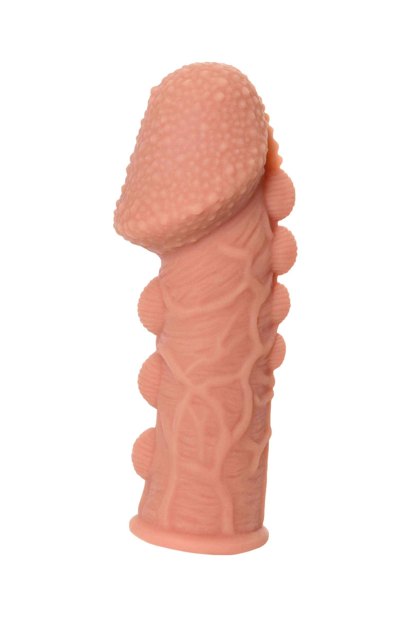 Увеличивающая насадка KOKOS Extreme Sleeve 09 с впечатляющей дополнительной стимуляцией решает сразу 3 задачи: дарит удовольствие обоим партнерам, позволяет экспериментировать с секс-игрушками и выводит интимную жизнь на более высокий уровень.1. Желанное разнообразие. Насадка придает члену внушительный объем и новую форму, поэтому как нельзя лучше подходит для сценариев «Секс с незнакомцем». При этом рельеф в виде увеличенной текстурированной головки, венок по всей поверхности и выпуклых бугорков, имитирующих пирсинг, привносит незабываемый эффект новизны в ощущения партнерши.2. Зашкаливающее удовольствие для двоих. В то время как женщина испытывает потрясающее чувство наполненности и получает интенсивную стимуляцию стенок влагалища, мужчина наслаждается более продолжительным половым актом и возбуждающими оргазмами партнерши. 3. Яркие эксперименты. Киберкожа прекрасно передает всю мощность вибраций, поэтому насадку можно использовать не только с партнером, но и с любимым вибратором. Вы также оцените:• как KOKOS Extreme Sleeve 09 превосходно тянется и легко надевается на член, обеспечивая при этом плотное и комфортное прилегание • как KOKOS Extreme Sleeve 09 быстро принимает температуру тела и насколько он приятен на ощупь• как KOKOS Extreme Sleeve 09 долго сохраняет первоначальный вид при соблюдении простых правил — использование лубрикантов на водной основе и хранение в индивидуальной упаковке в прохладном темном местеУвеличивающая насадка KOKOS Extreme Sleeve 09 подарит ощущения, которых у вас еще не было.Рекомендуем использовать до и после применения - дезинфицирующее средство для игрушки, чтобы обеспечить длительное скольжение и комфорт интимных отношений, рекомендуем использовать смазку на водной основе. Для бережного хранения материала пересыпать пудрой для игрушек. Хранить при температуре не выше 35 градусов, избегать попадания прямых солнечных лучей.