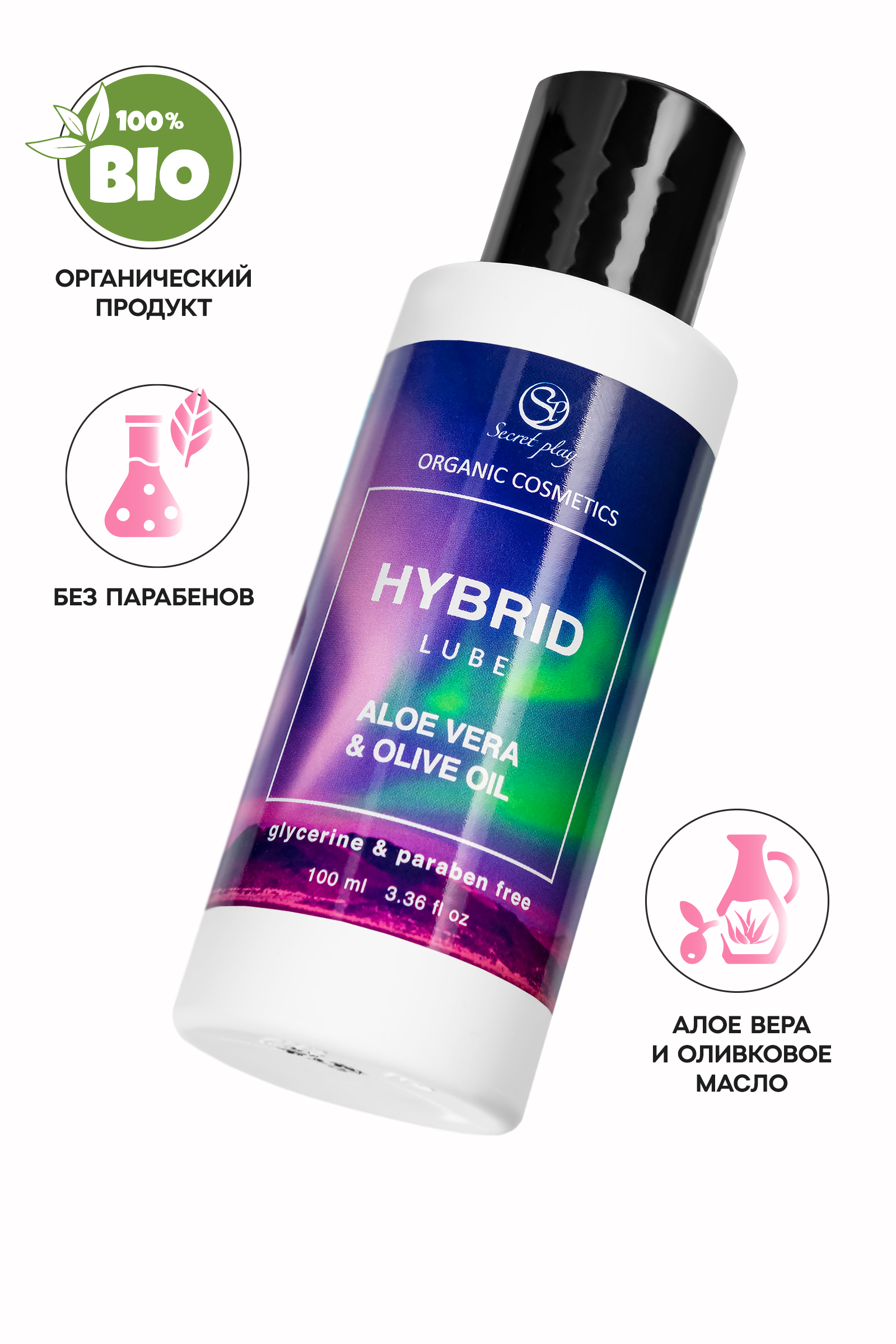 Hybrid Lube от испанского бренда Secret Play — это гибридная смазка на водной основе, которая сочетает в себе натуральное оливковое масло и сок алоэ вера, чтобы подарить вам ощущение естественного комфорта и нежного скольжения. Благодаря уникальной формуле с добавлением масла, Hybrid Lube обеспечивает более длительное и гладкое скольжение, чем стандартные смазки на водной основе, сохраняя естественное ощущение, мягкость и легкость текстуры. Алое вера помогает успокоить и увлажнить кожу, а оливковое масло (натуральный силикон) обеспечивает гладкое и приятное скольжение, усиливая чувственные ощущения. Смазка дополнена маслом иланг-иланга, которое повышает сексуальное влечение и добавляет нотку романтики в ваши интимные моменты. Эта органическая смазка создана для тех, кто ценит качество и заботится о своем здоровье. Она не содержит парабенов, глицерина и других агрессивных компонентов, что делает ее безопасной для чувствительной кожи. Наслаждайтесь каждым мгновением близости с комфортом и заботой о себе и своем партнере. Гибридная формула с алоэ вера и оливковым маслом Легкая, нелипкая текстура Подходит для веганов и изготовлена из высококачественных органических ингредиентов Не содержит парабенов, глютена и сахара Сертифицировано как органический продукт Подходит для использования с латексом и секс-игрушками Без запаха и вкуса Не тестируется на животных Бутылка, пригодная для вторичной переработки Сделано в Испании Объем: 100 мл Состав: цветочная вода лаванды широколистной, гидрогенизированный этилгексиловый оливат, ксантановая камедь, сок листьев алоэ барбаденсиса, гидрогенизированное неомыляемое оливковое масло, фруктовое масло Olea Europaea, цветочное масло Cananga Odorata, сорбат калия, бензоат натрия, молочная кислота, лимонная кислота, линалоол, бензилбензоат, бензилсалицилат, фарнезол