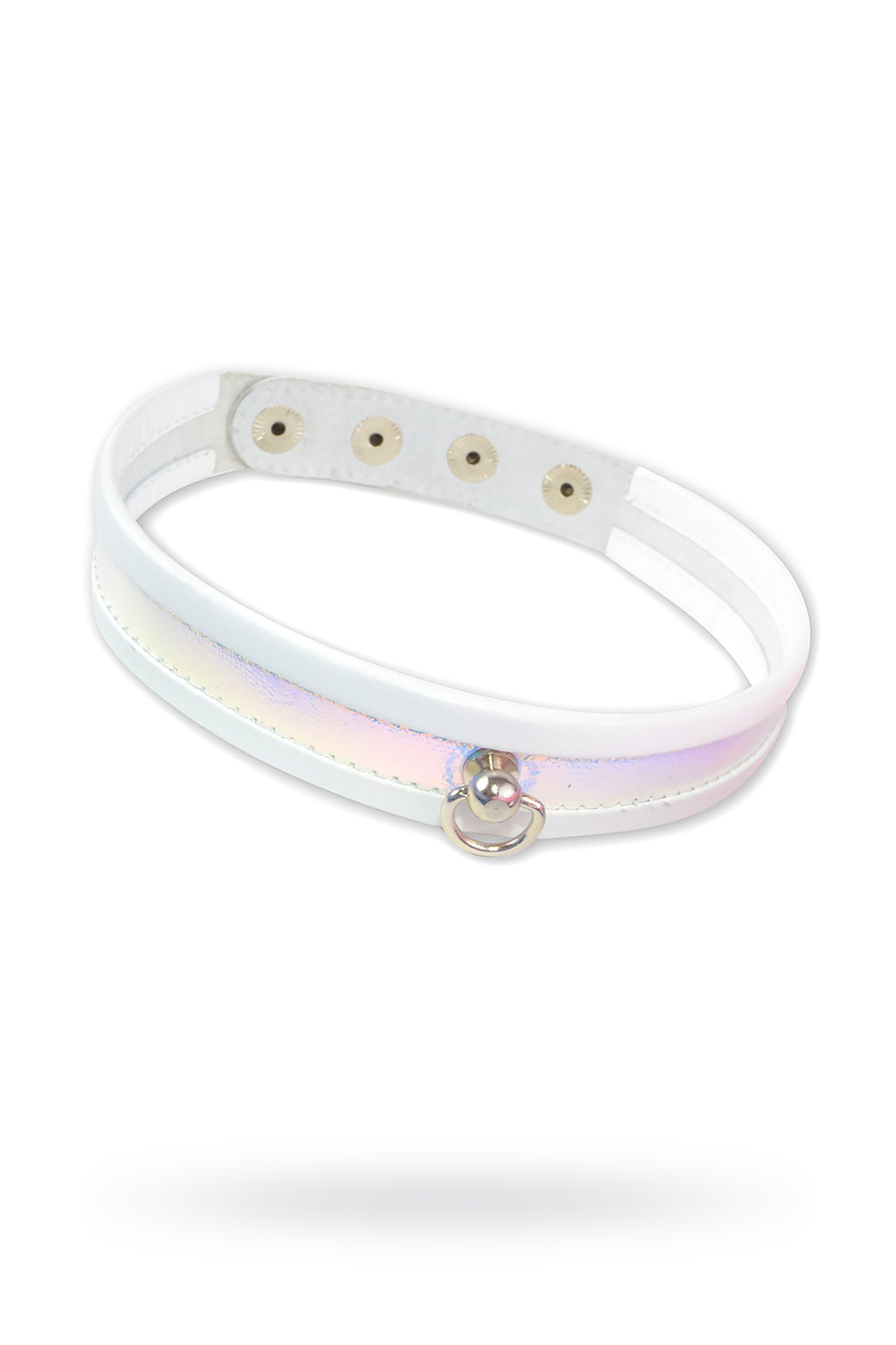 Белоснежный сверкающий узкий ошейник от Sitabella подойдёт, как для «ванильных» ролевых развлечений, так и для сессий BDSM. Узкий, аккуратный он плотно и комфортно прильнёт к Вашей шее. Скруглённые края ошейника придают ему рельефность, объёмность, а самое главное, не позволяют врезаться в нежную кожу шеи. Особенность данного ошейника в том, что он декорирован голографической вставкой, которая переливается нежными тонами: розовым, голубым, серебристым, сиреневым. Помимо собственных оттенков ошейник отражает окружающие цвета, что делает его колорит ещё богаче. Ошейник изготовлен из натуральной белой кожи и имеет кнопки с никелевым покрытием, для регулировки размера изделия на теле. В центре передней части ошейника имеется небольшое полукольцо для поводка.Ширина ошейника 2 см.Длина 41 см.