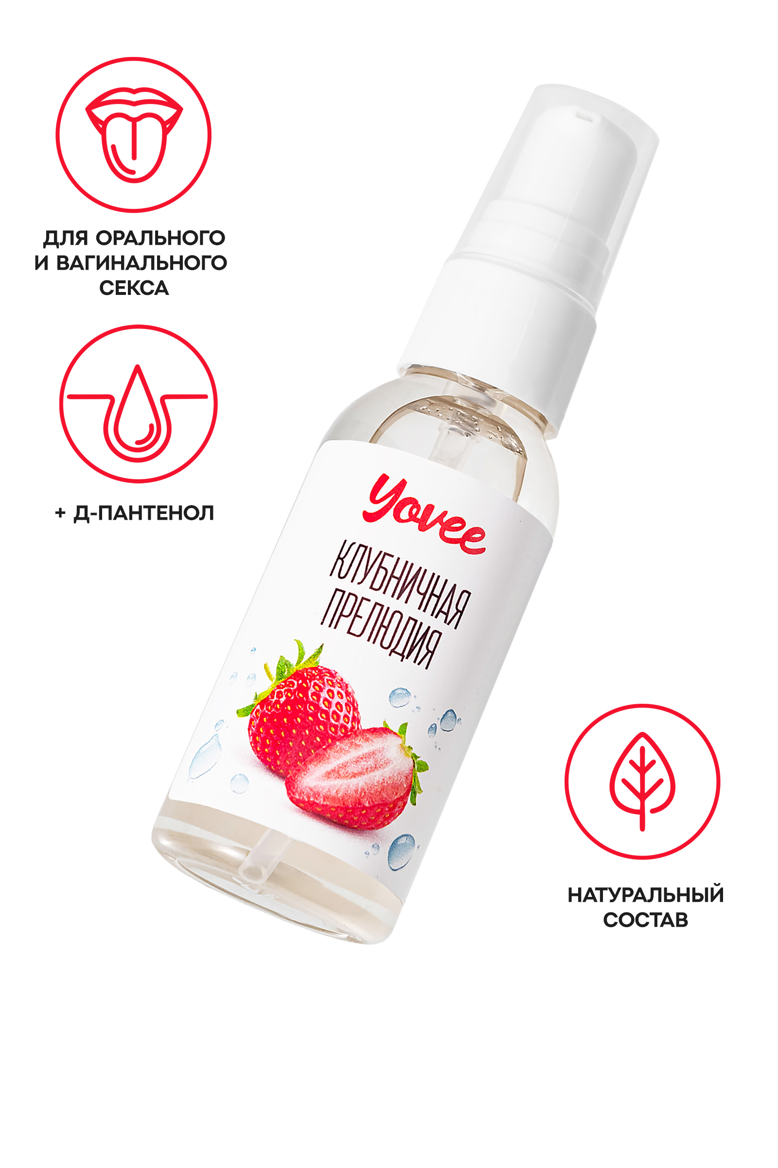 Интимный гель-смазка Yovee «Клубничная прелюдия» подарит комфорт и безупречное скольжение. Пантенол окажет успокаивающее и смягчающее действие, ускорит процессы регенерации слизистых. Пленительный аромат и вкус клубники усилят удовольствие. Подходит для использования как с презервативом, так и без него. Шелковистая текстура на водной основе обеспечивает длительное скольжение без липкости и скатывания. Легко смывается водой, не оставляет следов на одежде и постельном белье. Благодаря безопасным ингредиентам не нарушает естественный pH. Состав безопасен при случайном проглатывании. БЕЗ ГЛИЦЕРИНА БЕЗ ПАРАБЕНОВ БЕЗ КРАСИТЕЛЕЙ БЕЗ САХАРА