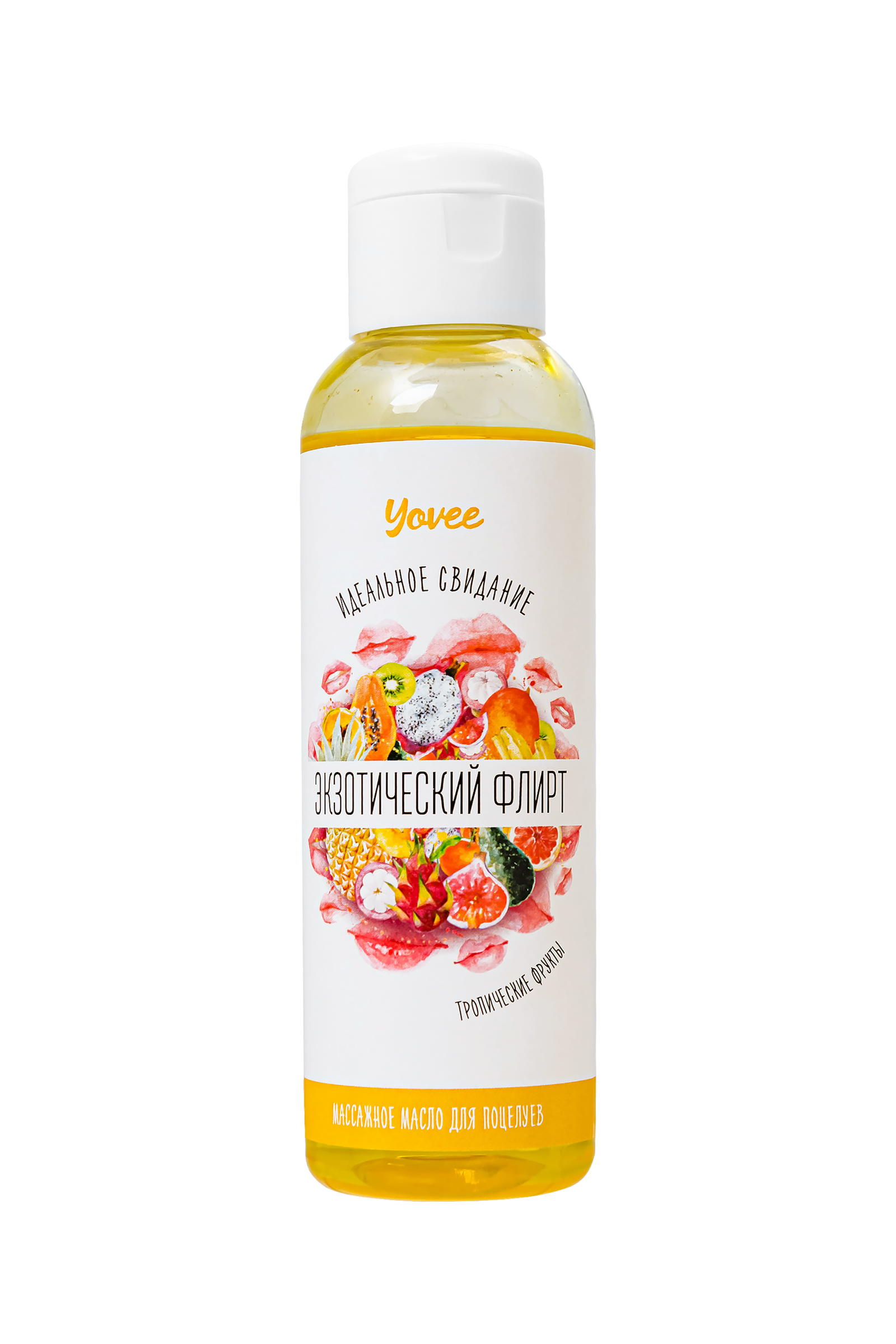 Массажное масло для поцелуев Ёви «Экзотический флирт» со вкусом тропических фруктов сделает свидание незабываемым. Ароматный сладкий массажный продукт дополнит парный романтический вечер или станет сочным уходовым средством для самостоятельного использования. Ощутите, как кожа наполнится влагой, станет мягкой и упругой. Яркий фруктовый аромат опьянит, раскрываясь на горячей коже роскошным шлейфом. Налейте масло в ладони или на кожу, разотрите тонким (!) слоем, чередуя нежные и интенсивные движения. Несмотря на натуральный и безопасный состав масла для поцелуев Yovee «Экзотический флирт» - это концентрат, поэтому не рекомендуется пить масло из флакона. Продукт не подходит для использования в качестве лубриканта. Идеи для свидания: Предложите партнеру экзотический массаж с фруктовым вкусом. Лейте масло вдоль спины медленно, массируйте сначала ладонями, а затем телом. Начните слизывать приятное на вкус масло прямо с кожи. Не забудьте поменяться местами, предложив партнеру себя как десерт. Такое свидание останется в памяти надолго! Сделайте поцелуи слаще: нанесите массажное масло плотным слоем на губы и отправляйтесь в сладкое путешествие по телу партнера. Массируйте губами, языком и зубами чувствительные зоны любимого человека. Осторожнее! Держите ситуацию под контролем, чтобы случайно не откусить кусочек самого вкусного!