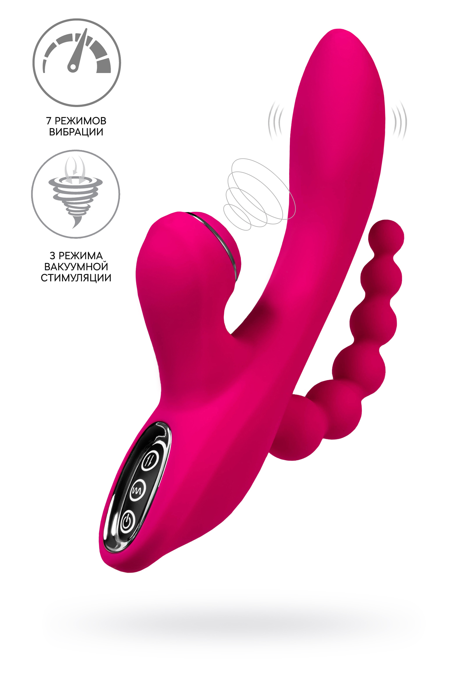 Позвольте TRIPLING от бренда Джос стать вашим незаменимым спутником в мире удовольствия и экстаза! Этот вибростимулятор 3 в 1 охватит каждую эрогенную зону вашего тела, доставляя вам множество приятных сенсаций и незабываемых оргазмов. С двумя мощными моторами внутри, TRIPLING предлагает разнообразие ощущений, которые вы еще не испытывали. Его загнутая головка специально разработана для стимуляции точки G, чтобы каждый оргазм был в разы ярче и интенсивнее. Плавно расширяющийся анальный отросток-елочка идеально подходит для постепенного введения, принося непревзойденное удовольствие, даже при первом опыте. Мотор, находящийся в основании, передает мощные вибрации в анальный отросток, добавляя новые измерения наслаждения. И как вишенка на торте, вакуумный стимулятор клитора заботится о вашем экстатическом оргазме, оставляя вас с трепетными воспоминаниями. Изготовленный из высококачественного бархатистого силикона, TRIPLING обеспечивает максимальный комфорт и приятные тактильные ощущения. Его элегантный дизайн и гладкая текстура делают его не только мощным инструментом удовольствия, но и прекрасным аксессуаром для вашей коллекции интимных игрушек. Зарядите его с помощью USB-кабеля и наслаждайтесь его возбуждающими функциями в любое время и в любом месте. Три режима вакуумной стимуляции клитора и семь режимов вибрации позволят вам настроить интенсивность стимуляции под свои предпочтения и желания. TRIPLING создан для тех, кто ищет новые уровни удовольствия и жаждет удивительных ощущений. Не забывайте о правильном хранении и уходе за TRIPLING, чтобы он всегда оставался вашим верным спутником. Перед каждым использованием полностью зарядите вибростимулятор. После использования промойте его мыльной водой и дезинфицируйте антибактериальным спреем, чтобы сохранить его гигиеничность и долговечность. Погрузитесь в мир бесконечного наслаждения с TRIPLING и дайте волю своим фантазиям и желаниям. 7 режимов вибрации 3 режима вакуумной стимуляции клитора анальный отросток-елочка заряжается от USB бархатистый силикон общая длина 21 см Время зарядки: 120 минут Время работы на полной зарядке: 90 минут Рекомендуем использовать до и после применения - дезинфицирующее средство для игрушки чтобы обеспечить длительное скольжение и комфорт интимных отношений, рекомендуем использовать смазку на водной основе. Хранить при температуре не выше 35 градусов, избегать попадания прямых солнечных лучей. Перед хранением стимулятор необходимо хорошо просушить